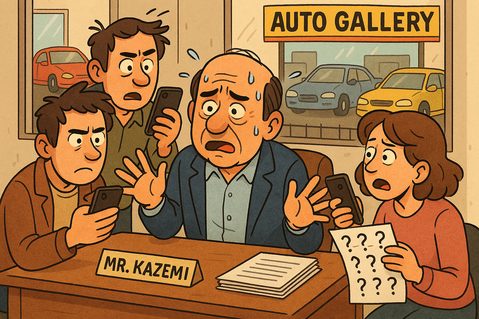 کاظمی برای فروش خودروها مجبور بود آگهیها رو در چند سایت مختلف منتشر کنه. هر تغییر کوچکی مثل تغییر قیمت یا فروختهشدن ماشین، باید دستی در همه سایتها و دفترچه یادداشت خودش اصلاح میشد. گاهی هم فراموش میکرد و همین باعث بیاعتمادی مشتریها میشد.